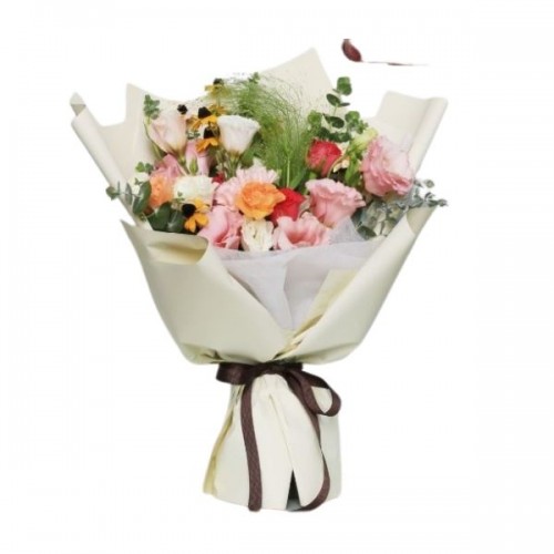 계절꽃과 소재로 제작한 혼합 꽃다발 상품입니다.