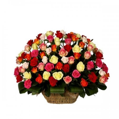 계절꽃과 다양한 소재로 제작한 혼합 꽃바구니 상품입니다.