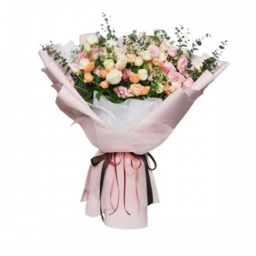 계절꽃과 소재로 제작한 혼합 꽃다발 상품입니다.